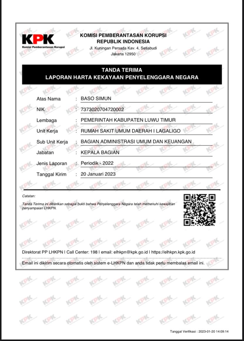 | Judul | LHKPN BIDANG ADMINISTRASI UMUM DAN KEUANGAN RSUD I Lagaligo |