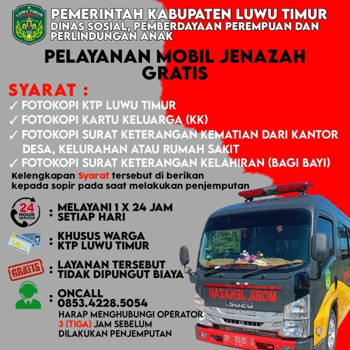 | Judul | Pelayanan Mobil Jenazah Gratis,Dinas Sosial Pemberdayaan Perempuan dan Perlindungan Anak Tahun 2023 |