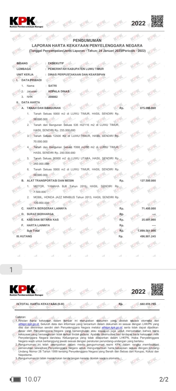 | Judul | LAPORAN HARTA KEKAYAAN (LHKPN) KEPALA OPD TAHUN 2022 |