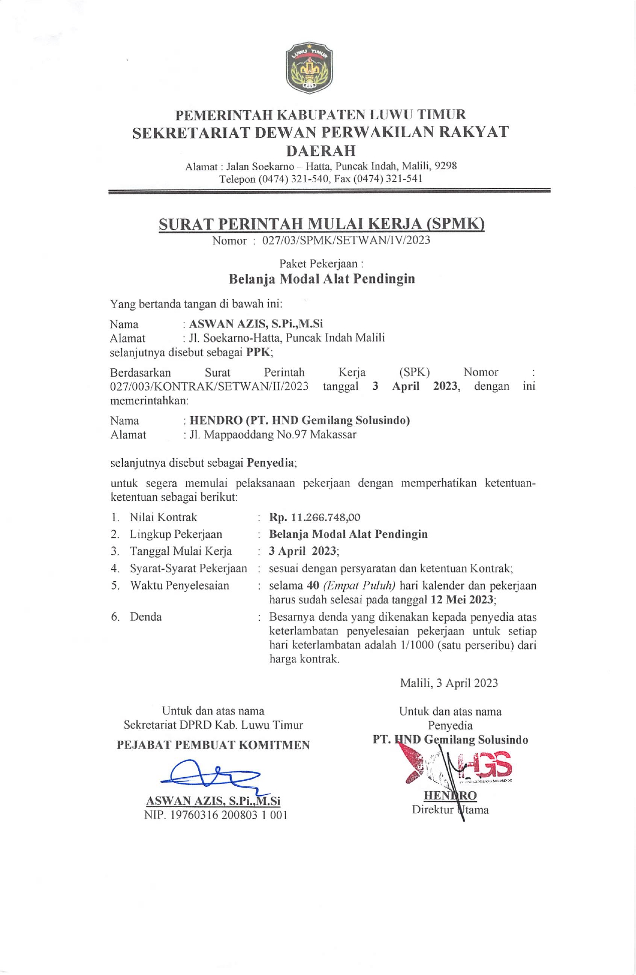 | Judul | SURAT PERINTAH MULAI KERJA (SMPK) PENDINGIN RUANGAN SETWAN (AC) |