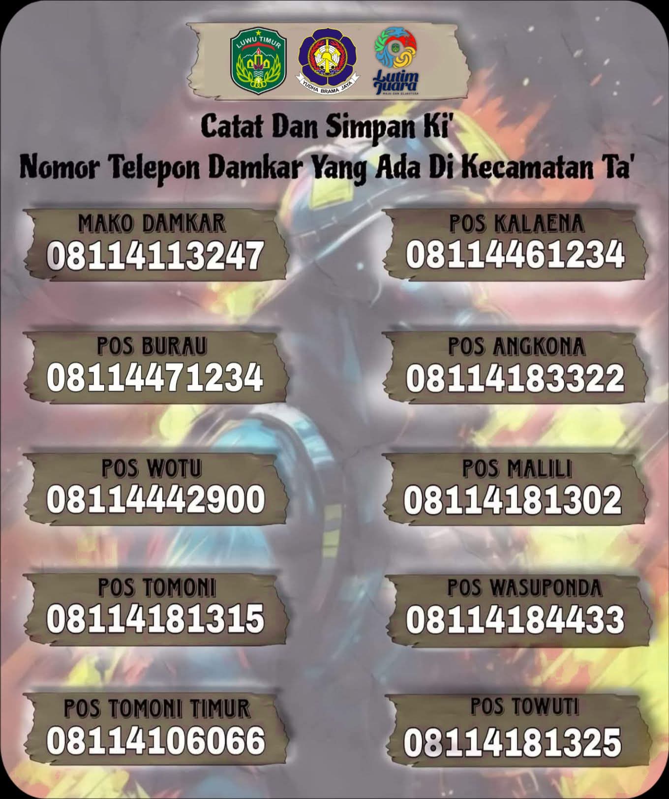 | Keterangan | Call Center Posko Pemadam Kebakaran dan Penyelamatan |